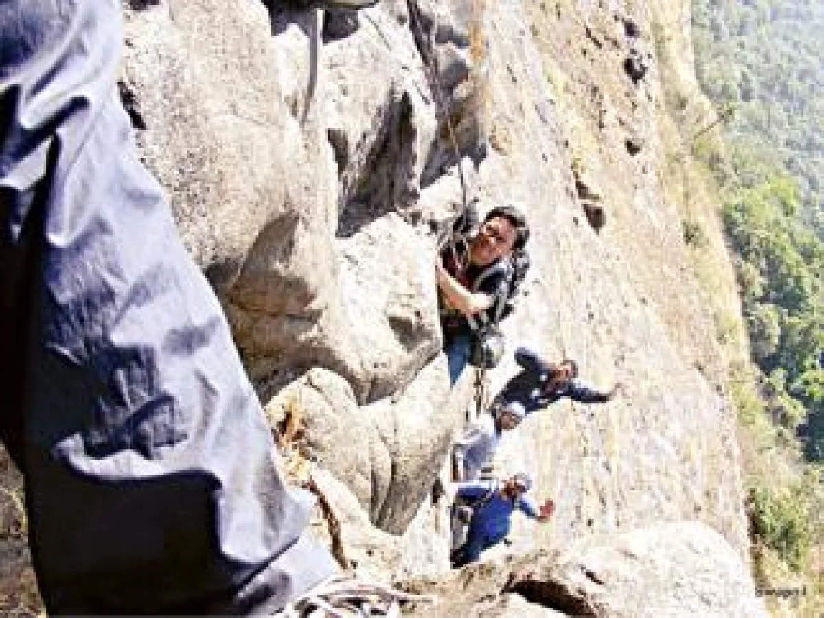 सकाळी ब्रेड-बटर जॅम अशी न्याहरी करून पुढच्या वाटेला लागलो. लोणावळा-भीमाशंकर ही वाट उजव्या हाताला जंगलातून खुणावत होती. तिथून पुढे गेल्यावर गावकर्यांनी लावलेली पाटी दिसली. ‘ढाक-बहिरी पवित्र गुहा-स्त्रिांना प्रवेश नाही’ पुढे एका वळणाने अशा जागी नेले की तिथून समोर डोळे फिरवून टाकणारी खोल दरी दिसत होती आणि दगडाच्या बेचक्यातील वाट एवढी निमुळती आणि खोल होती की तिथून सॅकसहित उतरणे शक्य नव्हते. एकजण खाली गेला आणि मध्ये साखळी करून सगळंच सॅक प्रथम खाली पाठविल्या आणि नंतर सगळे उतरले.