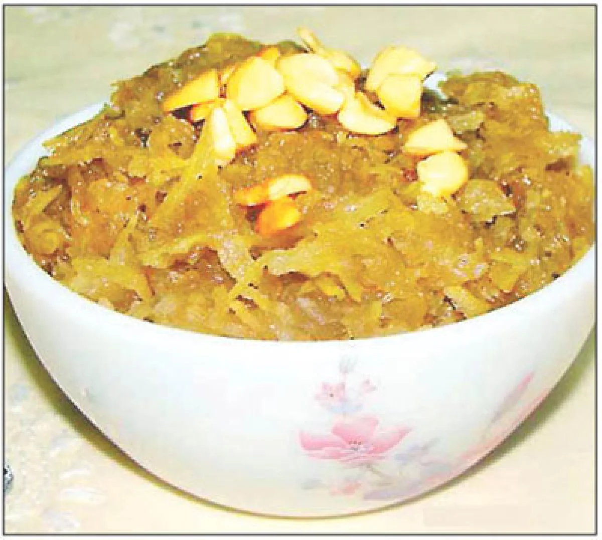कृती : तांदूळ तासभर आधी धुऊन ठेवावे. थोडेसे तूप टाकून गरम तुपावर प्रथम लवंगा परताव्या व नंतर त्यावर तांदूळ परतावेत. तांदळाच्या दुप्पट गरम पाणी त्यावर घालावे. चवीला मीठ व किंचित हळद घालून तो भात मोकळा शिजवावा. शिजल्यावर तो परातीत पसरून मोकळा करावा. एका पातेल्यात साखरेचा गोळीबंद पाक करून घ्यावा.
