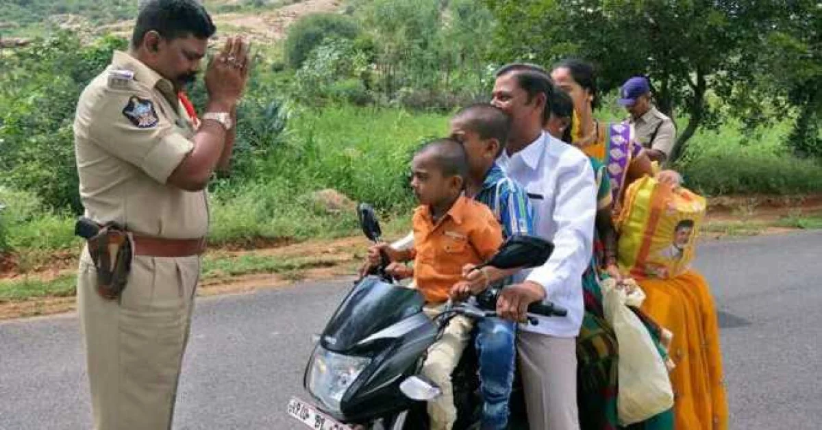 बेंगळुरूचे डीसीपी-ट्रॅफिक ईस्ट, बेंगळुरू यांनी एक अत्यंत गमतीदार फोटो ट्विट केला आहे. आंध्र प्रदेशातील अनंतपूर येथील सर्कल इन्स्पेक्टर बी शुभ कुमार हे ट्रॅफिक नियम तोडणाऱ्या एका कुटुंबासमोर कोपरापासून हात जोडून उभे आहेत. कुटुंबातील पाचजण एकाच दुचाकीवरून जात आहेत आणि कोणाच्याही डोक्यावर हेम्लेट नाही, जा बाबा, सुरक्षित जा’ असे म्हणण्याखेरीज काय म्हणणार बिचारा. हा फोटो सोशल मीडियावर व्हायरल झाला आहे.
